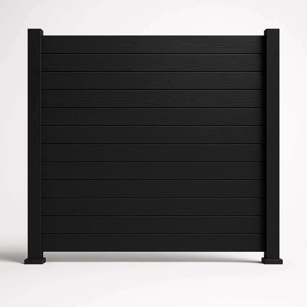 Zaun Komplett-Set: WPC Paneele & WPC-Pfosten (Bausatz zum Aufschrauben), Schwarz