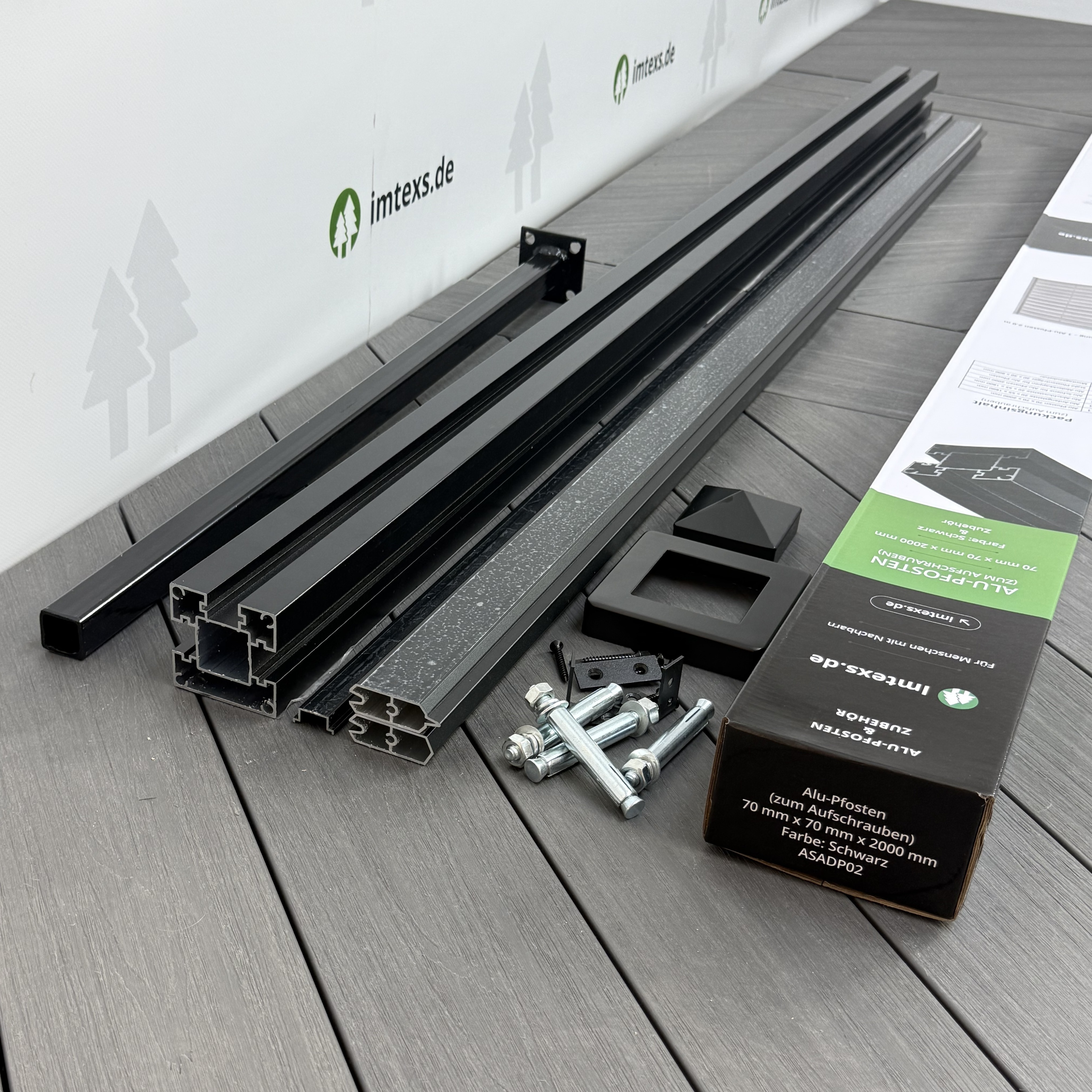 - 1x ALU Pfosten 70×70 mm, Länge 2,0 m, schwarz