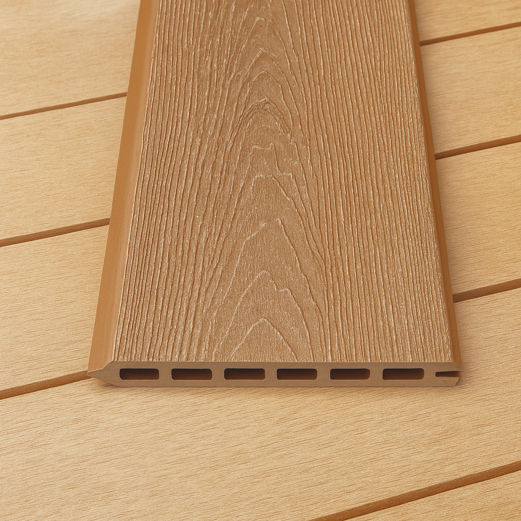 Unsere WPC-Paneele sind in einer stilvollen Optik mit einer natürlichen Holzstruktur erhältlich. Wählen Sie aus den Farben Teak, Grau und Dunkelgrau, um den perfekten Akzent in Ihrem Garten zu setzen.