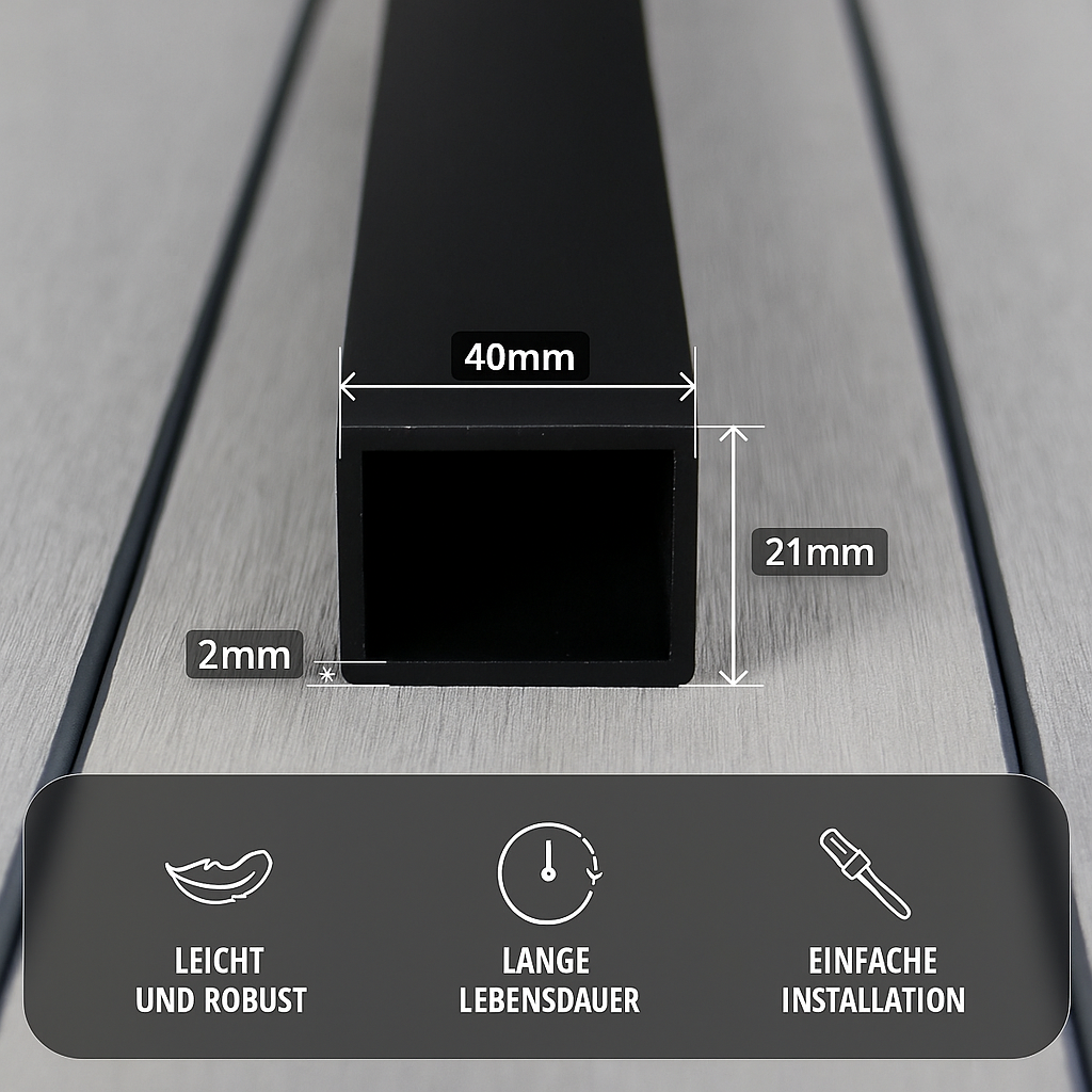 Aluminium Unterkonstruktion 21x40 mm, Stärke 2 mm, Schwarz